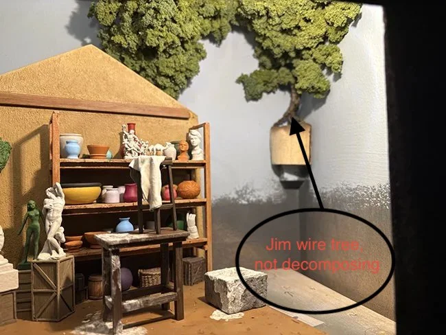 Finally, Jim highly recommends building your own trees from wire and florist’s lichen as opposed to using roots from the garden like Shep Paine did, since those are guaranteed to decompose over time. And, if you do spend the money to buy dirt or mud in a jar, be sure to wrap it with this new (at least in Chicago grocery stores) “Cling Plus,” which seals it air-tight and prolongs its life. (This podcast is open to sponsorship by Saran Wrap, should you folks be listening.)